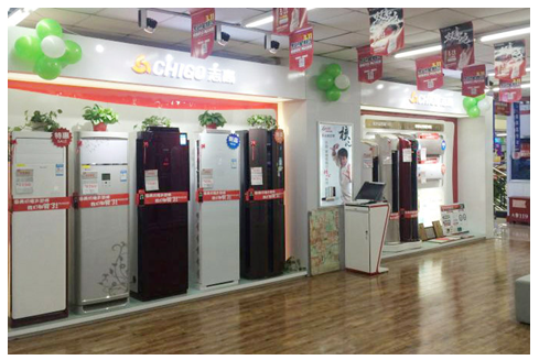 在終端門店的裝修設計上,一方面,志高將獨具特色的代言人元素、企業(yè)元素、企業(yè)文化、標準色彩等要素融入到其中,方便顧客更加直接、更加深入地了解企業(yè)產(chǎn)品和精神文化。