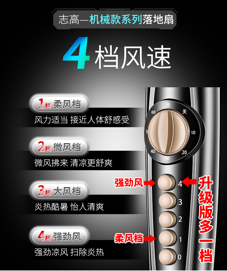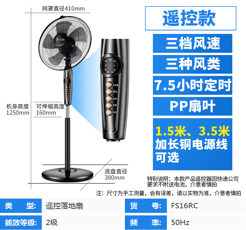 志高家用机械遥控定时静音落地扇