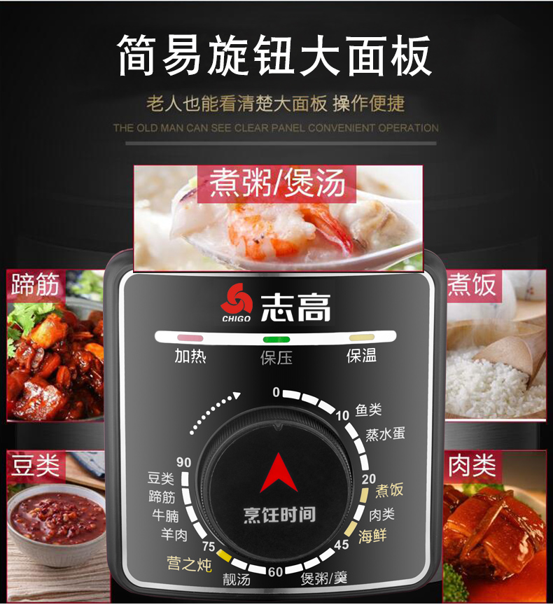 • Chigo/志高 HY-615D电压力锅智能多功能定时预约6升家用饭煲