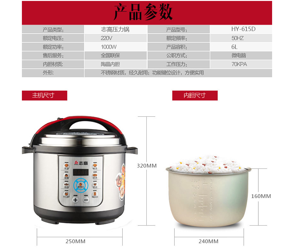 Chigo/志高 HY-615D电压力锅智能多功能定时预约6升家用饭煲